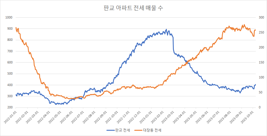 | 분당판교아파트 거래량 및 매물 수 변화 20231001 (0) | 2023.10.01 |