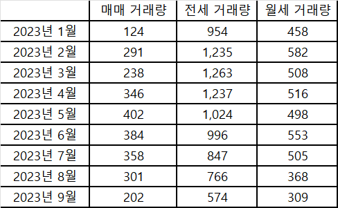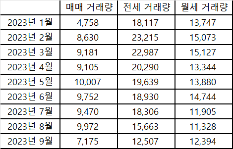 9월 아파트 매매 거래량은 10월 말까지가 거래 신고 기간입니다.