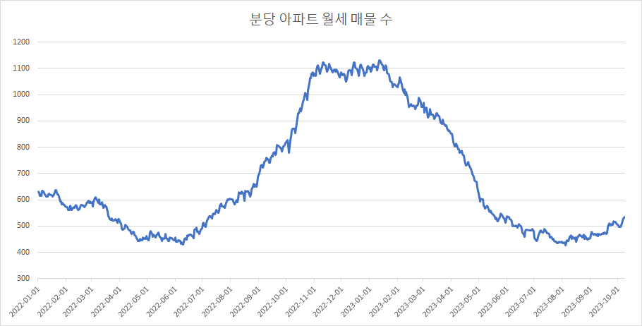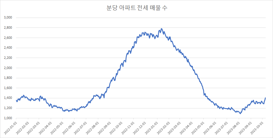다음은 분당 아파트 전세 매물 수 변화입니다.