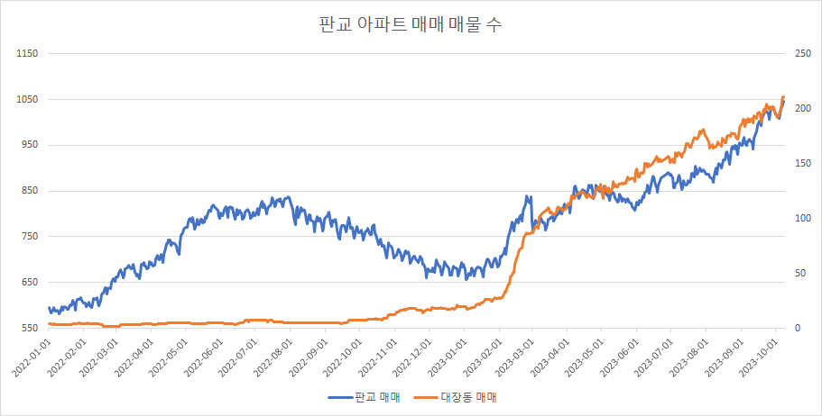대장동아파트 매매 매물 수 또한 지속 증가하고 있습니다.