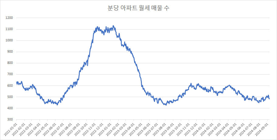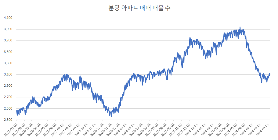 이제 분당구아파트 매물 수 변화를 확인하겠습니다.