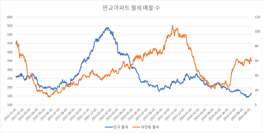 판교아파트 월세 매물 수는 2주 연속 증가했습니다.