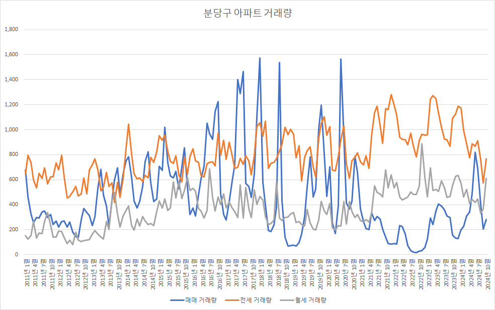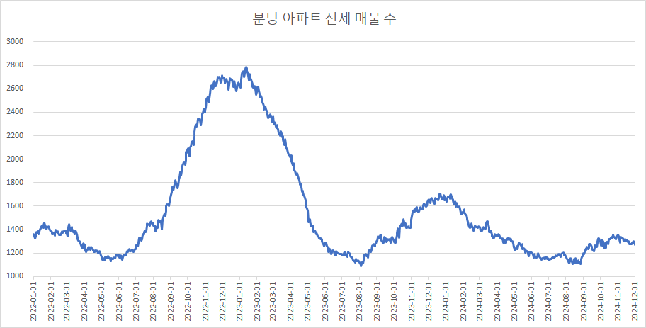 다음은 분당구아파트 전세 매물 수 변화를 확인하겠습니다.