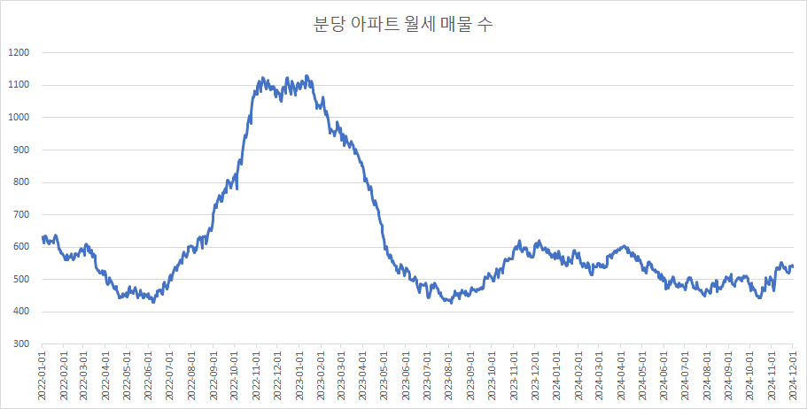 마지막으로, 분당구아파트 월세 매물 수 변화를 확인하겠습니다.