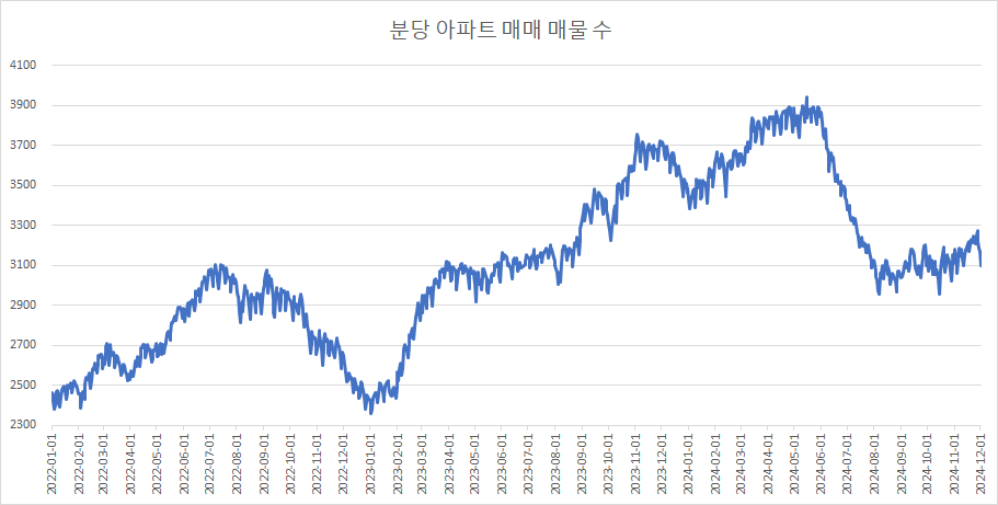 이제 분당구아파트 매물 수 변화를 확인하겠습니다.