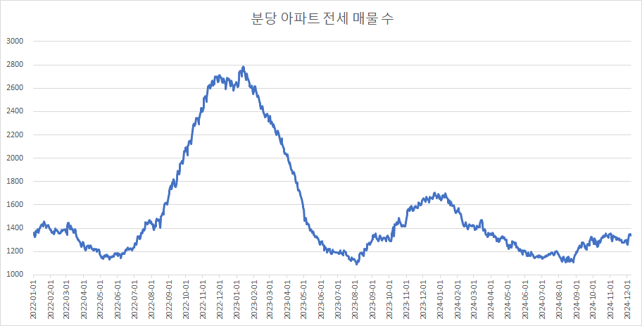 다음은 분당구아파트 전세 매물 수 변화를 확인하겠습니다.