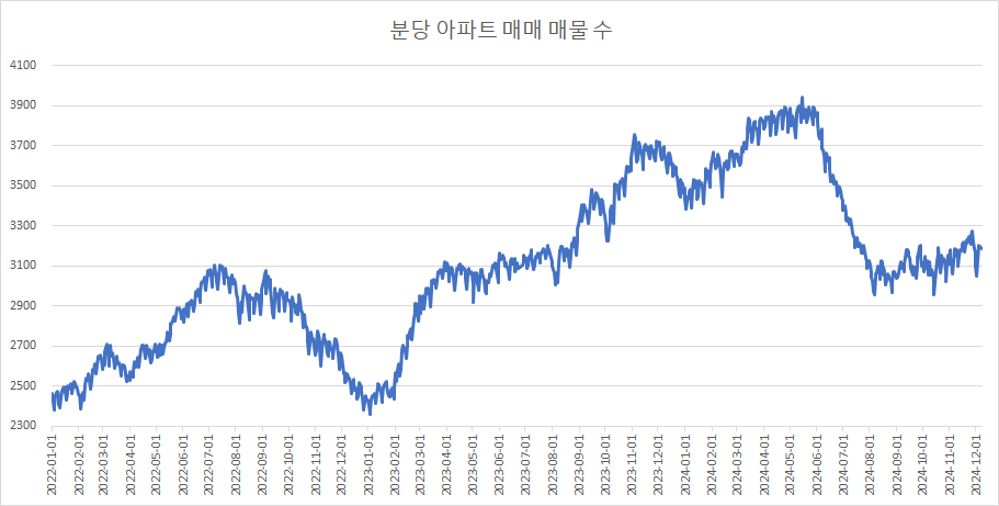 이제 분당구아파트 매물 수 변화를 확인하겠습니다.