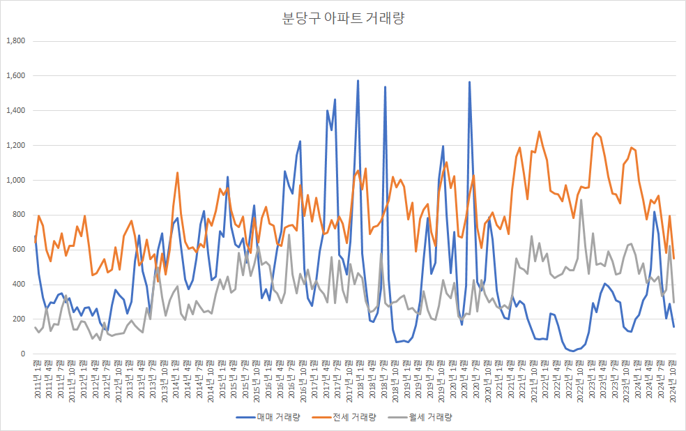 11월 분당구아파트 매매 거래량은 현재 156건입니다. 이 데이터를 바탕으로 11월 분당구아파트 최종 매매 거래량을 예측해 보면, 약 223건이 됩니다.