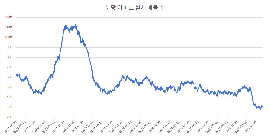 이제 분당구아파트 매물 수 변화를 확인하겠습니다.