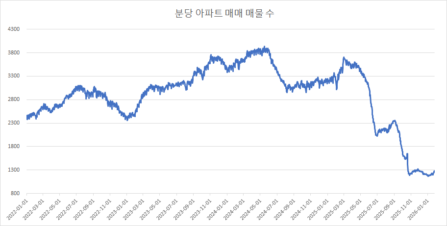 이제 분당구아파트 매물 수 변화를 확인하겠습니다.