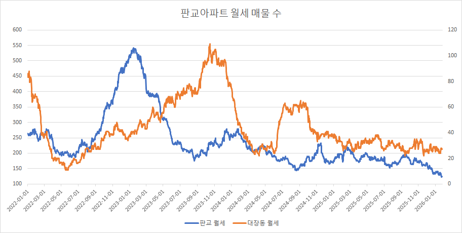 대장동아파트 월세 매물 수는 증가하고 있습니다.