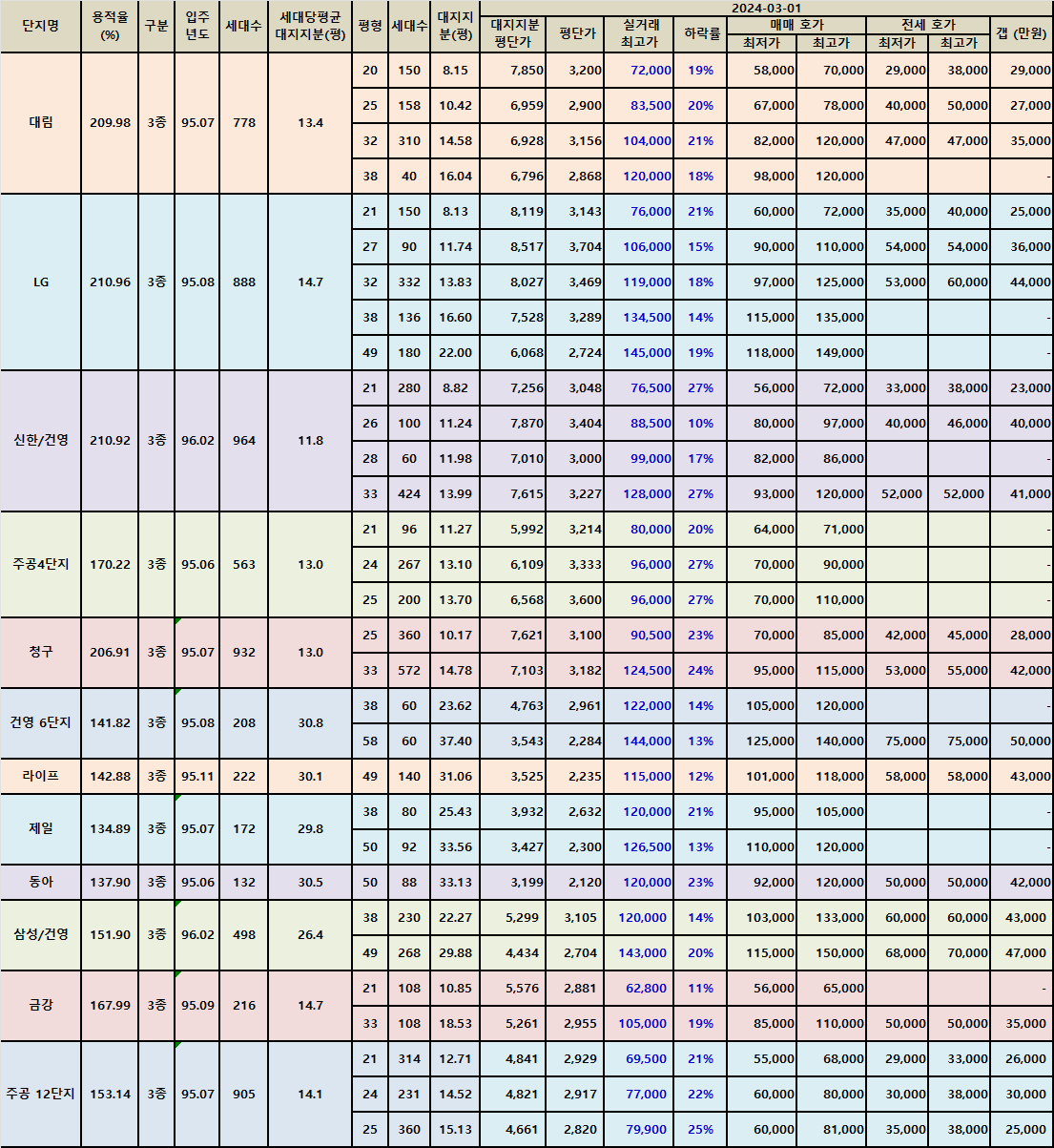 특히, 설 연휴 이후 시장이 살아나지 않으면서 구미동 무지개마을뿐만 아니라 전반적으로 매매가가 살짝 하락한 느낌을 주고 있습니다.