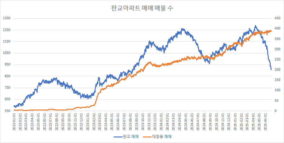 대장동아파트 매매 매물 수는 2주 연속 보합을 유지하고 있습니다.