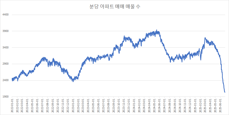 이제 분당구아파트 매물 수 변화를 확인하겠습니다.