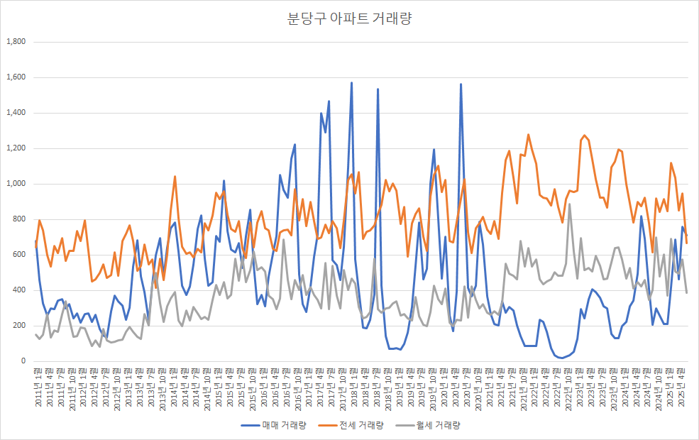 6월 분당구아파트 매매 거래량은 현재 713건입니다. 이 데이터로 6월 분당구아파트 최종 매매 거래량을 예측해보면, 약 1,639건이 됩니다.