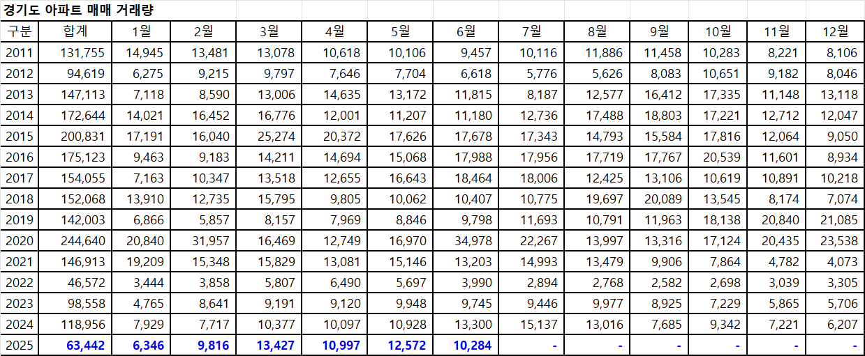 그럼에도 6월 경기도아파트 매매 거래량은 2025년 최대 거래량을 기록할 것으로 보입니다.