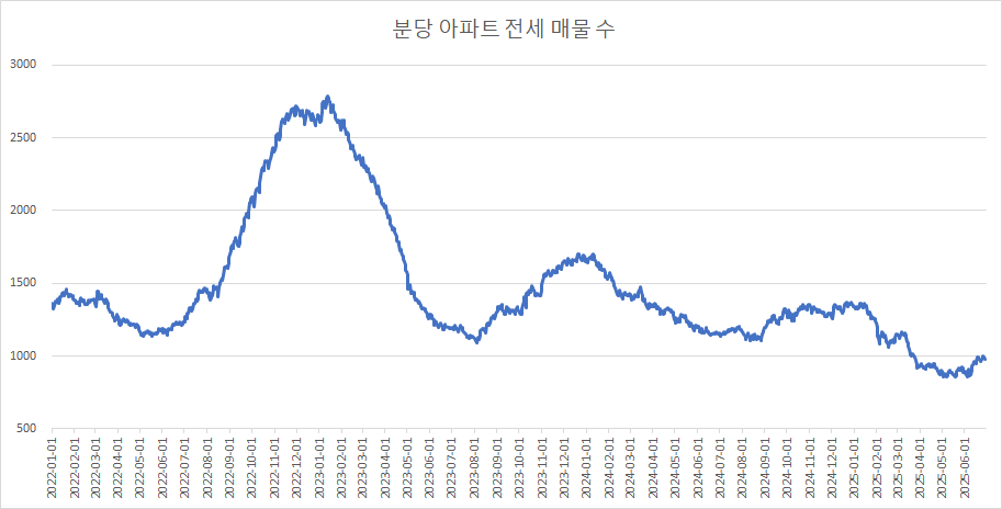 이제 분당구아파트 매물 수 변화를 확인하겠습니다.