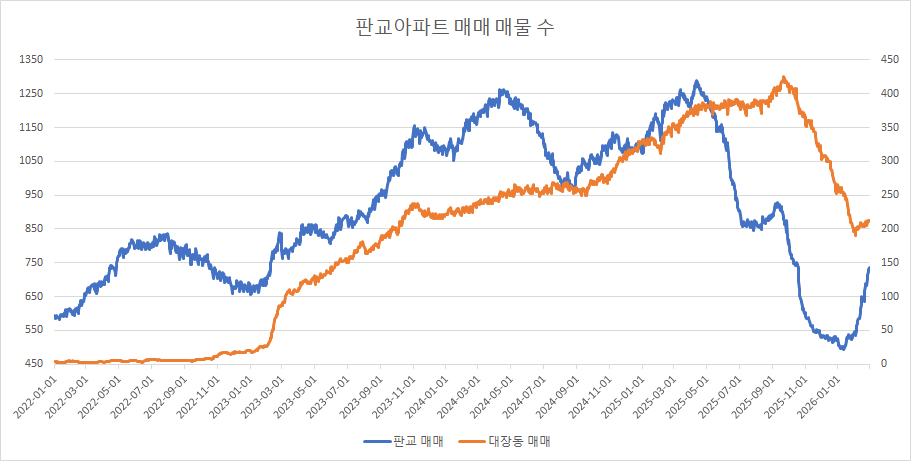대장동아파트 매매 매물 수는 3주 연속 증가했습니다.