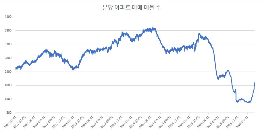 이제 분당구아파트 매물 수 변화를 확인하겠습니다.