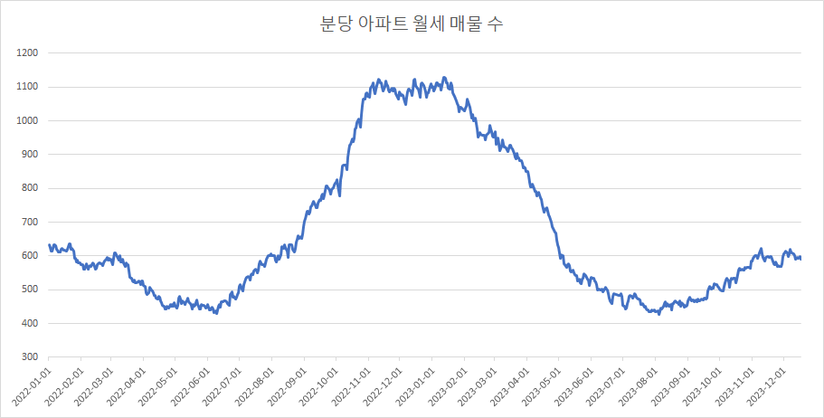 이제 분당구 아파트 매매 매물 수 변화를 확인해 보겠습니다.