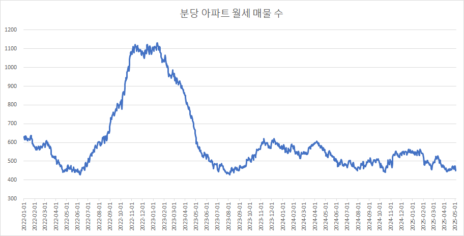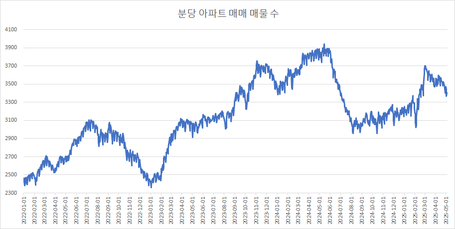 이제 분당구아파트 매물 수 변화를 확인하겠습니다.