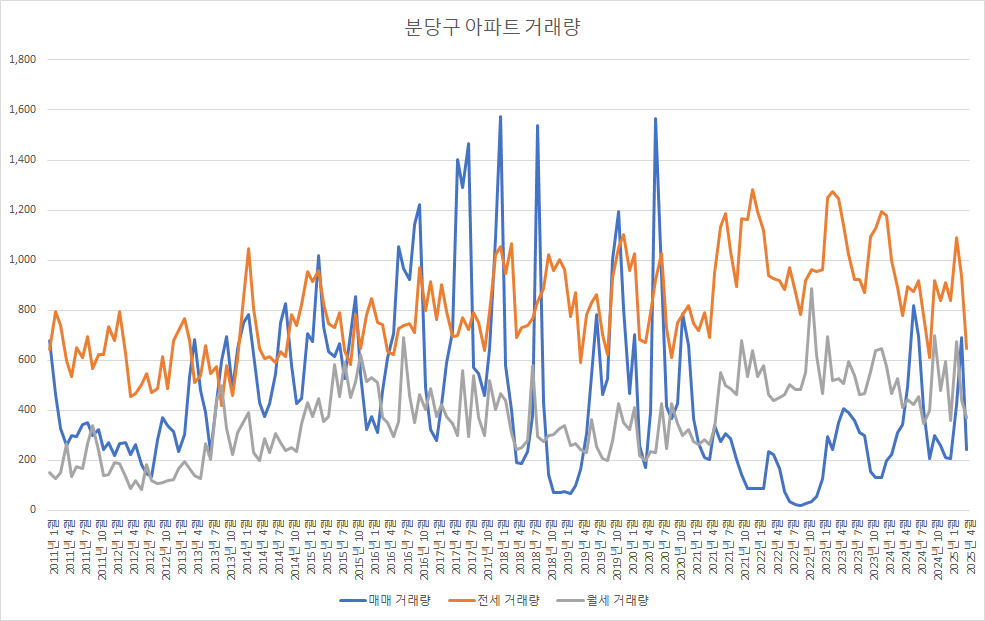 다음은 분당구아파트 전세 매물 수 변화를 확인하겠습니다.