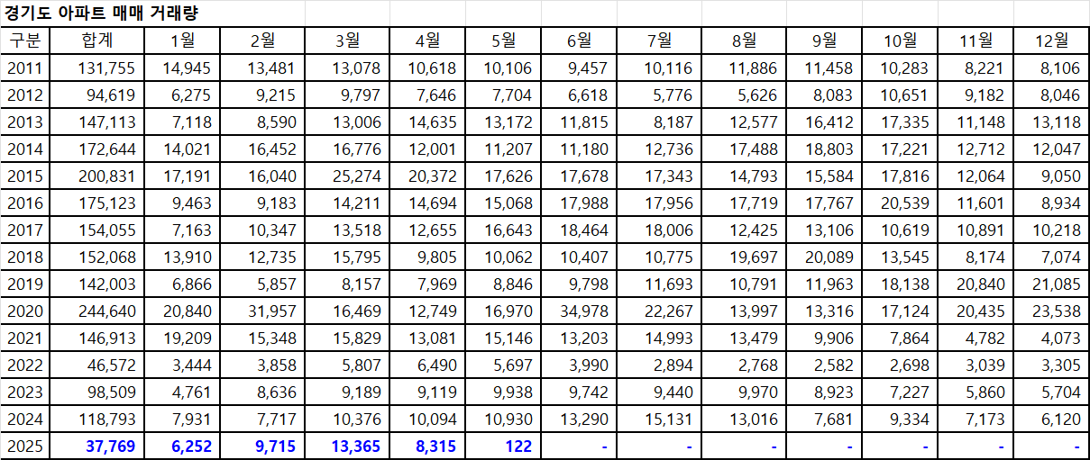 2024년 8월 이후 최대 거래량인데, 경기도아파트 월간 거래량이 13,000건을 넘어간다면 시장은 괜찮은 수준으로 판단 가능 합니다.