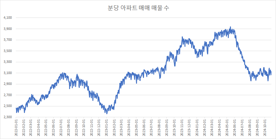 이제 분당구아파트 매물 수 변화를 확인하겠습니다.