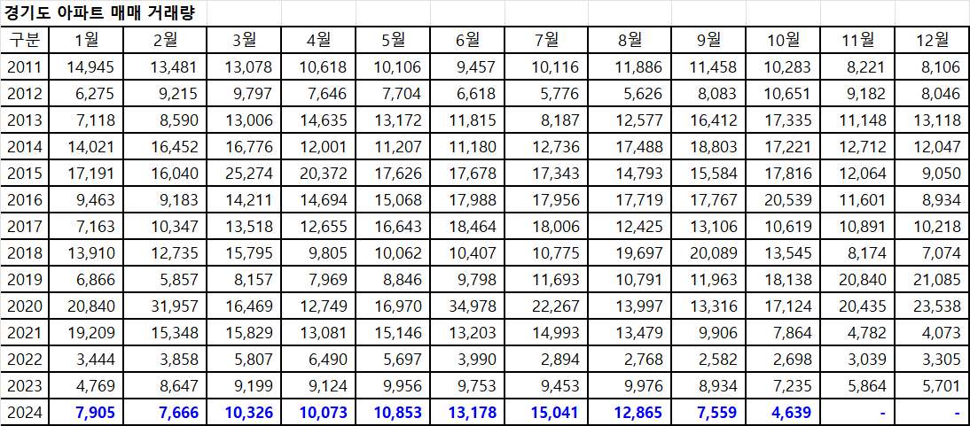 다만 10월 경기도아파트 매매 거래량은 1만 건은 지켜주기를 바라고 있지만, 지난주에 이어서 이번 주도 조용했기에 어쩌면 1만 건 아래에서 최종 집계 될 수도 있습니다.