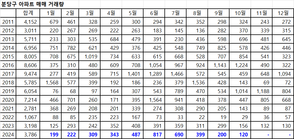 10월 분당구아파트 매매 거래량은 현재 120건입니다. 이 데이터를 바탕으로 10월 분당구아파트 최종 매매 거래량을 예측해 보면, 약 318건이 됩니다. 지난주에 예측했던 분당구아파트 10월 최종 매매 거래량은 294건이었습니다.