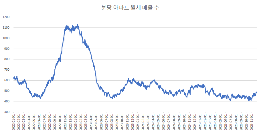 마지막으로, 분당구아파트 월세 매물 수 변화를 확인하겠습니다.