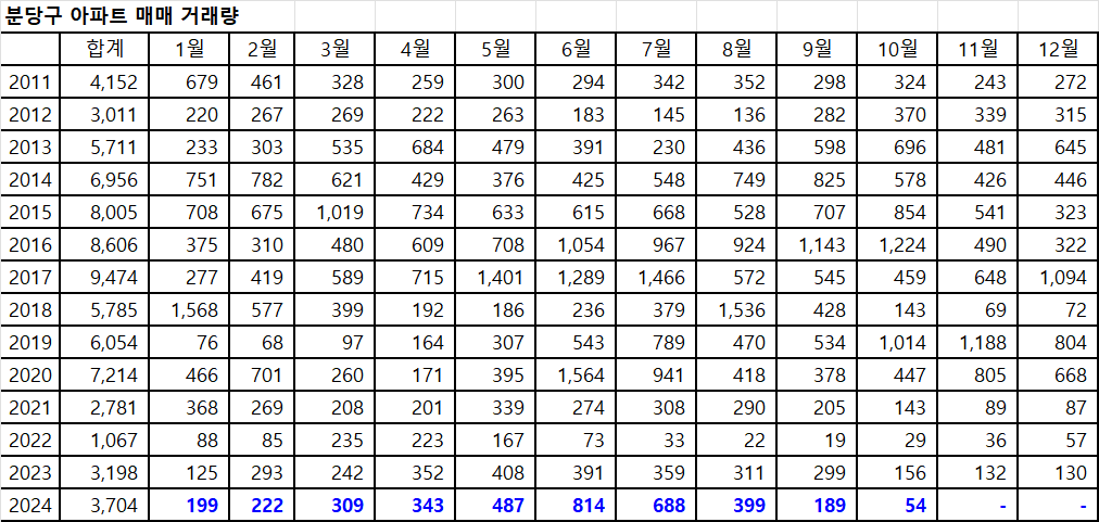 그럼에도 일단 9월이 분당구아파트 매매 거래량 바닥이고 10월부터 거래량이 증가한다는 것은 의미가 있어 보입니다.