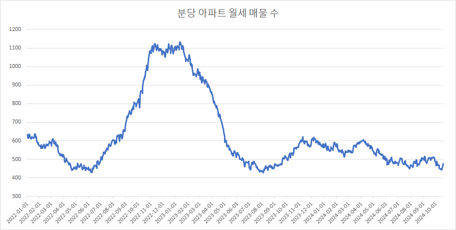 마지막으로, 분당구아파트 월세 매물 수 변화를 확인하겠습니다.