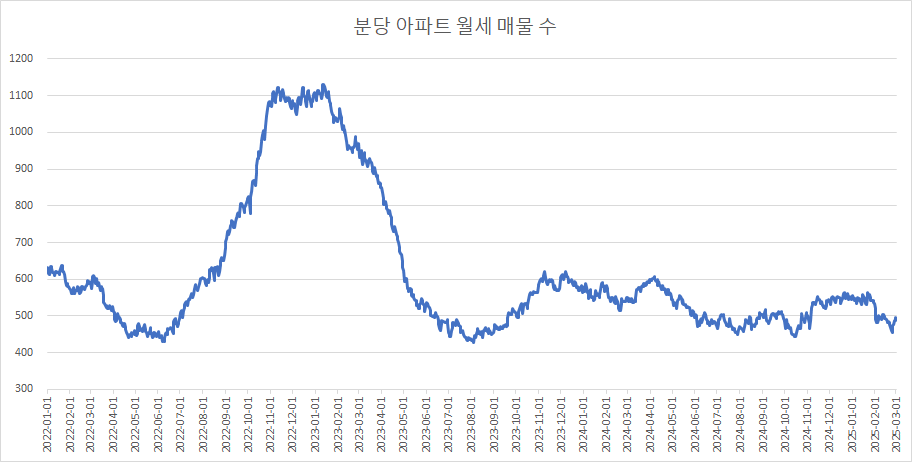 마지막으로, 분당구아파트 월세 매물 수 변화를 확인하겠습니다.