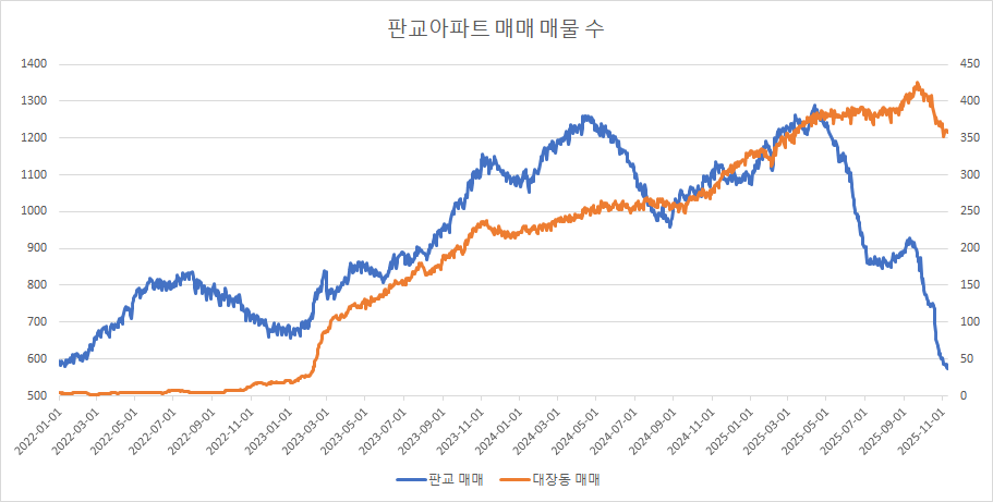 대장동아파트 매매 매물 수는 최근 5주 연속 감소 중이었으나, 이번 주에는 증가하고 있습니다.