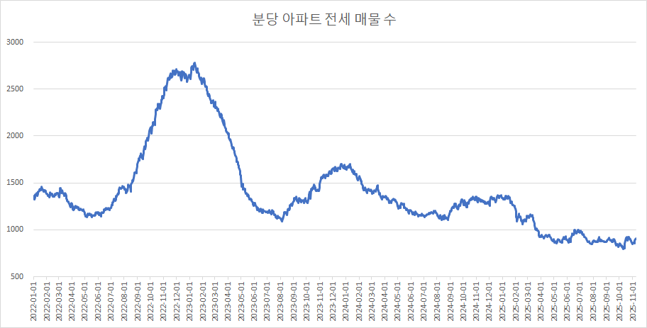 다음은, 분당구아파트 전세 매물 수 변화를 확인하겠습니다.