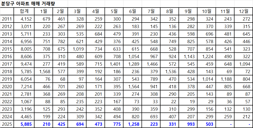 11월 분당구아파트 매매 거래량은 현재 0건입니다.
