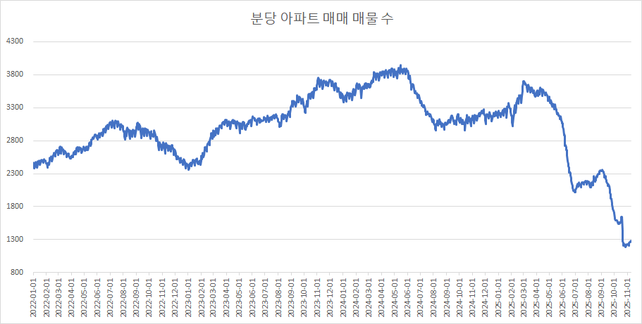 이제 분당구아파트 매물 수 변화를 확인하겠습니다.