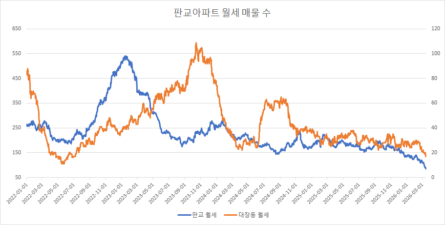 대장동아파트 월세 매물 수는 감소하고 있습니다.