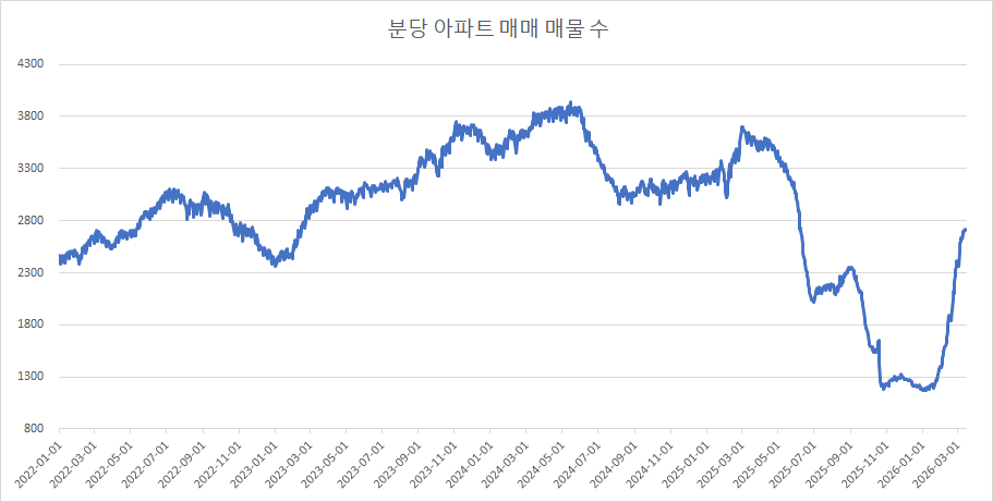 이제 분당구아파트 매물 수 변화를 확인하겠습니다.