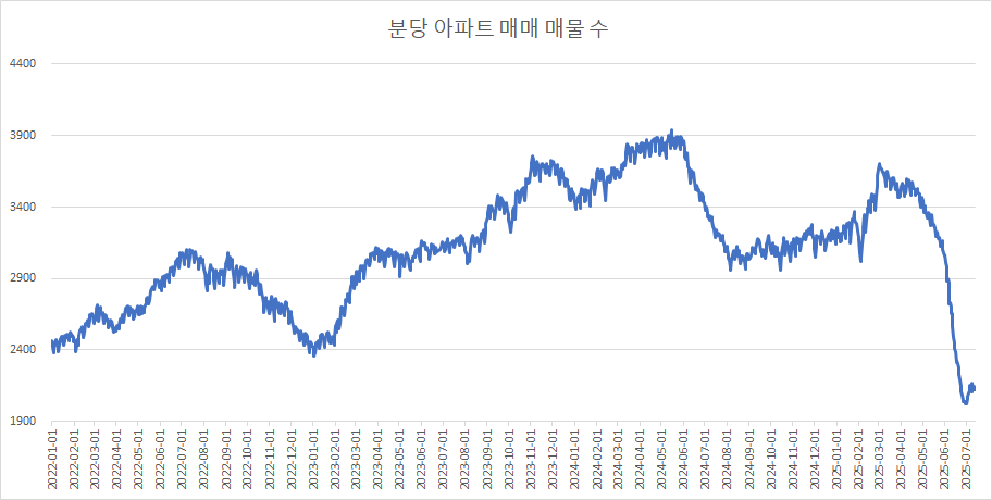 이제 분당구아파트 매물 수 변화를 확인하겠습니다.