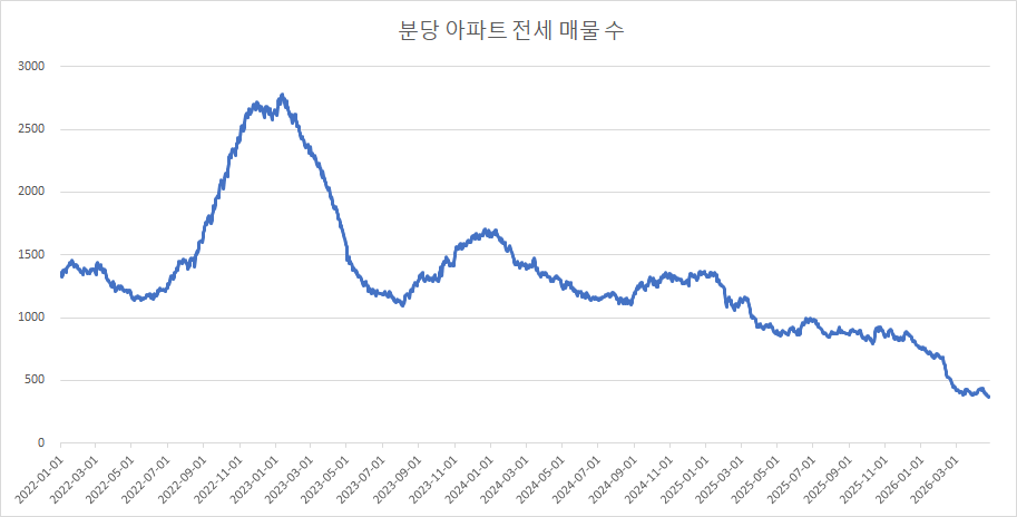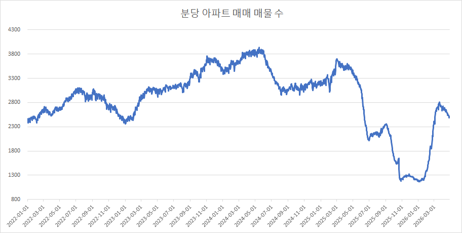 이제 분당구아파트 매물 수 변화를 확인하겠습니다.