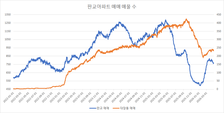 대장동아파트 매매 매물 수는 2주 연속 감소했습니다.