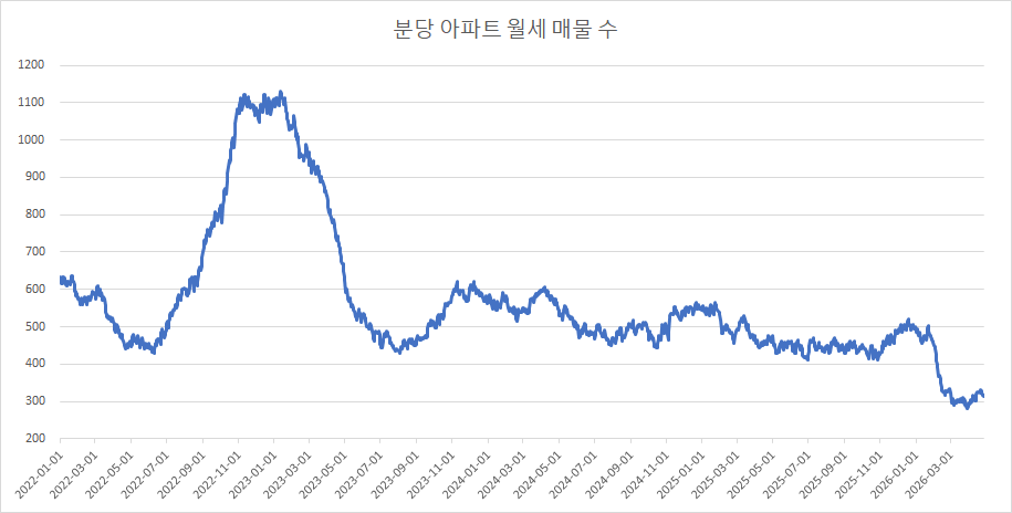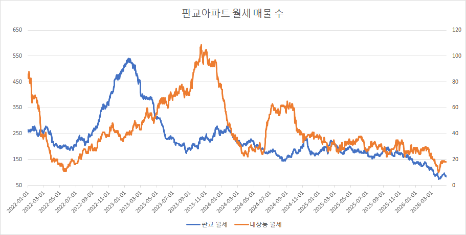 판교아파트 월세 매물 수는 감소했습니다.
