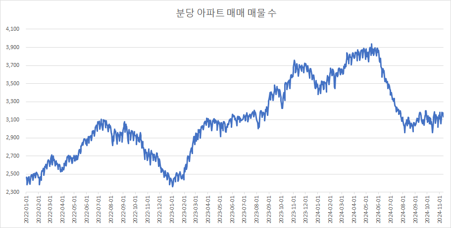 이제 분당구아파트 매물 수 변화를 확인하겠습니다.