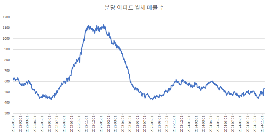 마지막으로, 분당구아파트 월세 매물 수 변화를 확인하겠습니다.
