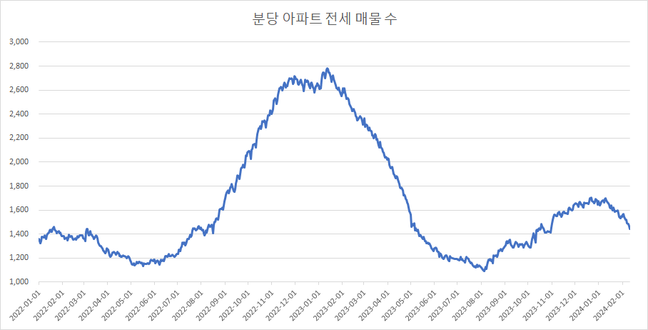 다음은 분당구 아파트 전세 매물 수 변화를 확인하겠습니다.