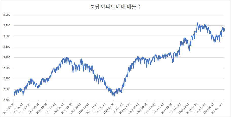 이제 분당구 아파트 매물 수 변화를 확인하겠습니다.