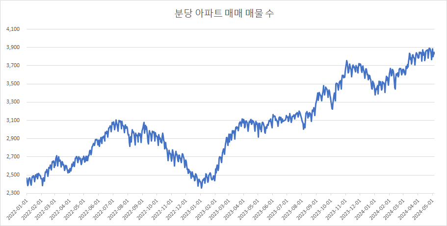 이제 분당구아파트 매물 수 변화를 확인하겠습니다.