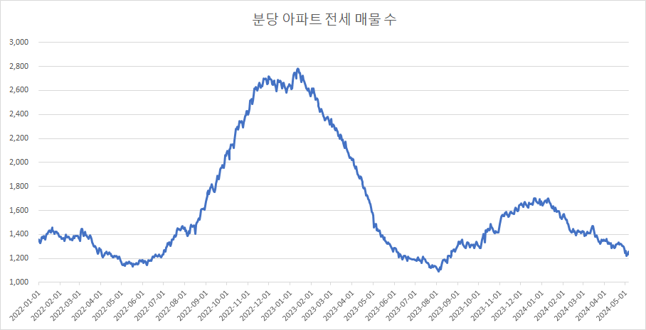 다음은 분당구아파트 전세 매물 수 변화를 확인하겠습니다.